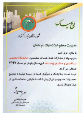 Folad Bam Mahan Company has been with you for more than 10 years, under the management of Engineer Saber Hossein Pour Bahnamiri.